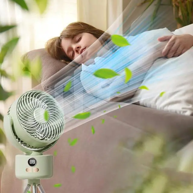 Outdoor Camping Fan: Comes with a tripod and can be adjusted for wind direction at multiple angles, 120° left and right, 140° up and down.