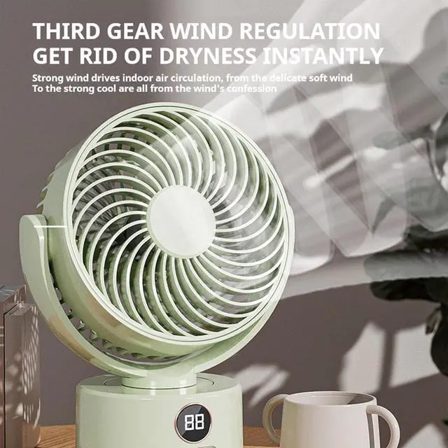 This desktop rechargeable high-capacity fan is uniquely designed with high-capacity fan blades that can be charged via USB, eliminating the need for frequent battery changes. Its long-lasting and stable wind power can help you cope with the hot summer days.