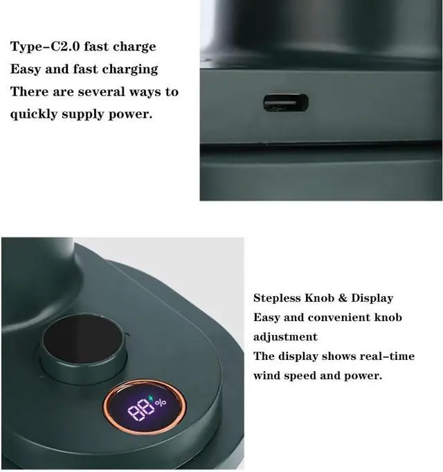 Fast chargingBuilt-in 4000mAh battery, continuous air supply for 3-12 hours 5V/2A fast charging, supports charging and using, and comes with a USB interface, which is convenient and fast for charging.