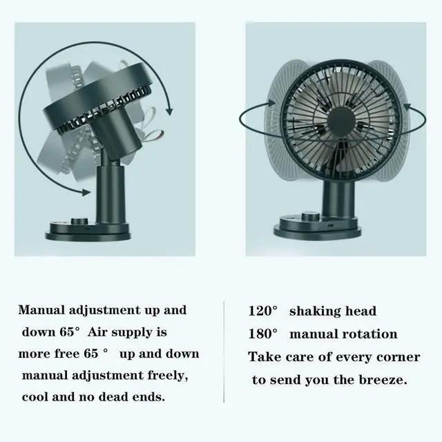 Adjustable120° shaking head, 90~180° manual adjustment. No matter where it is placed, you can find a comfortable blowing angle.