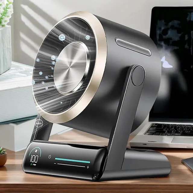 Digital Display for Battery and Speed Monitoring: clear LED screen shows remaining power and selected fan speed for quick and easy adjustments