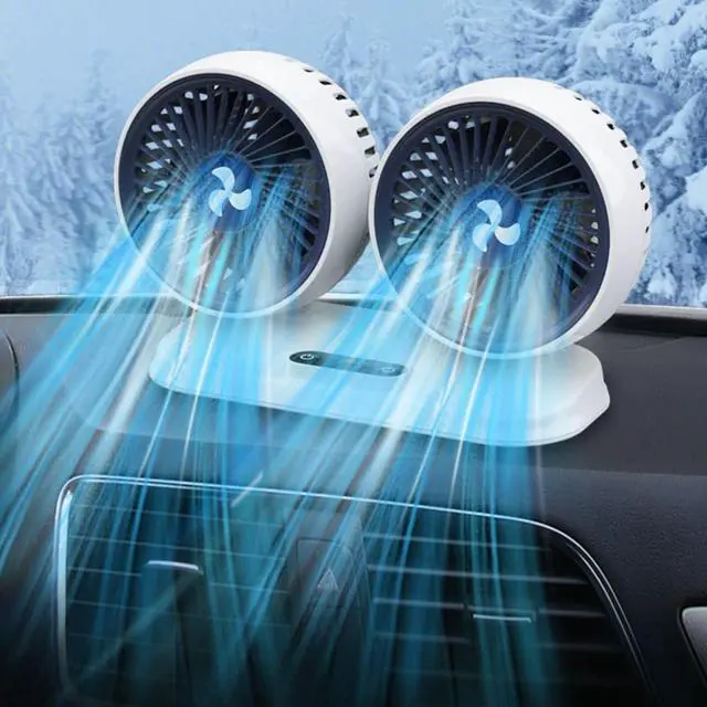 ADJUSTABLE DOUBLE FAN HEADS: The double fan heads can rotate 360° to deliver air without dead angle, you can rotate the car fan head to choose the wind direction, equipped with usb plug power cord, fast and effective, automatic circulation cooling, removes odors or dust and keeps the air fresh.