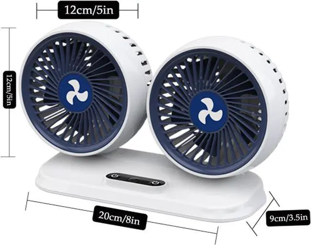 DOUBLE HEAD CAR FAN: Strong wind power, low noise, low energy consumption, low noise, the car fan is made of durable plastic and springs and buttons to ensure longevity and durability, beautiful appearance, small and portable unique design, perfect for hot summer, bring cool air to your family.