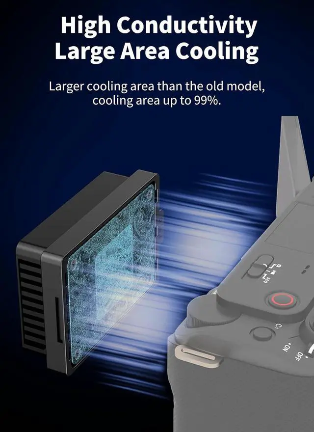 Aluminum Alloy Material: The fan body is mainly made of aluminum alloy, lightweight and sturdy while conducting heat well. The size is small and the weight is light. Mounted to the camera without burden.