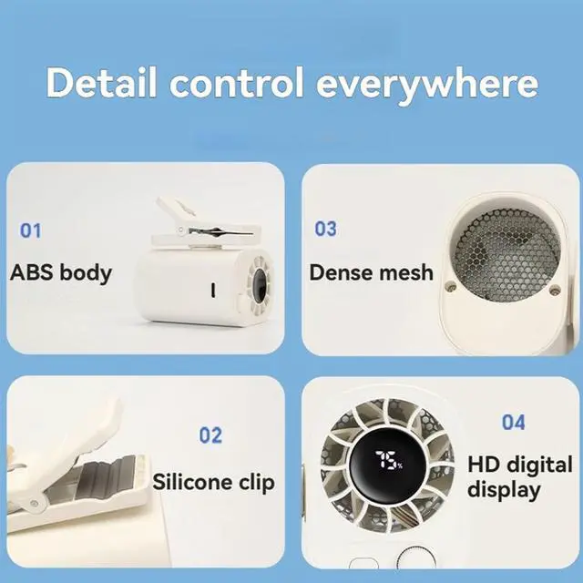 Strong Clip & Compact DesignCar clip on fan with led display securely attach the fan to air vents, tabletops with the sturdy clip; lightweight and durable for easy portability anywhere