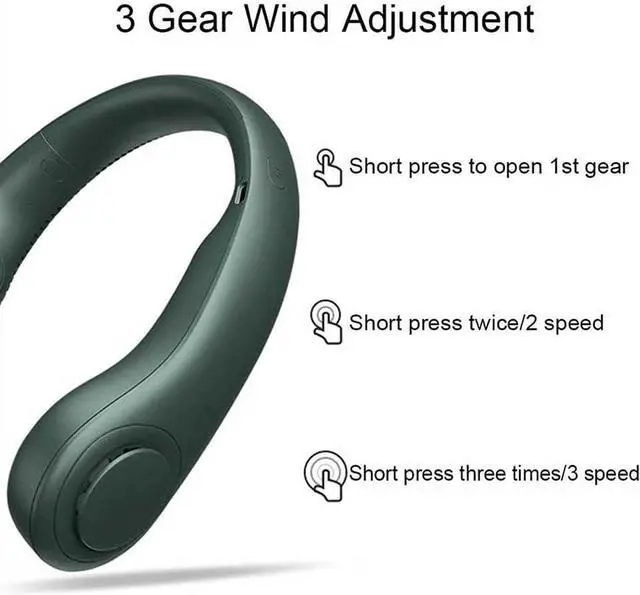 Adjustable Speed LevelLow/medium/high speed level. Adjust appropriate fan speed by pressing the power button. Neckband fan with powerful airflow can the fast and easy access to instant relief from hot flashes. Hanging the cooler fan around your neck and take it everywhere.