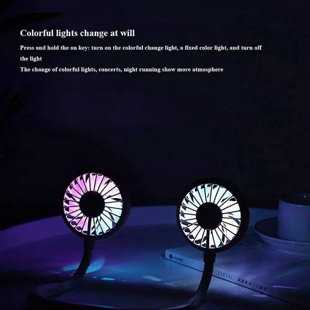 Colorful light design: The mini hanging fan at night will glow, which will help you run safely at night and is also your indicator light; it will bring you cool during the day