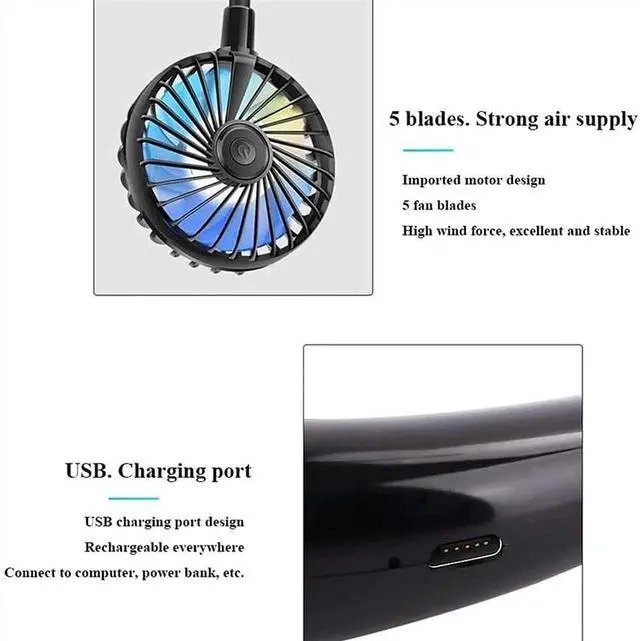 Hands-free design: The fan uses a personalized, hands-free and earphone design. You can hang the fan around your neck and carry it with you. It is very suitable for office family travel camping.