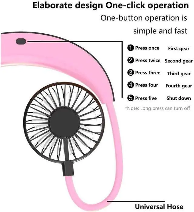 [3 wind speed adjustable] This neck-mounted fan has three wind speeds, you can choose low/medium/high, which can bring you different degrees of cool breeze.