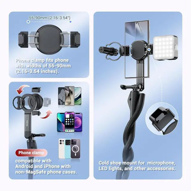MountSuitable for travel selfie sticks, video recording, Zoom meetings, macro photography, live streaming, and mobile movie production.