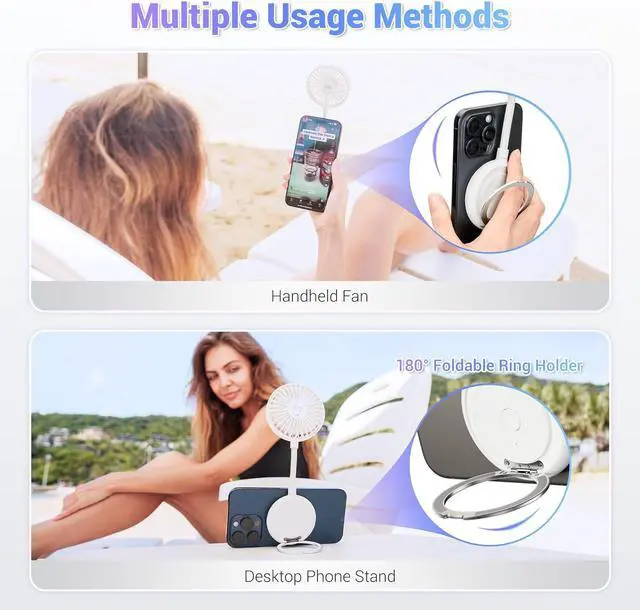 FanThis cell phone fan is easily magnetically attached to the back of your phone. You no longer have to hold the phone with one hand and the fan with the other.