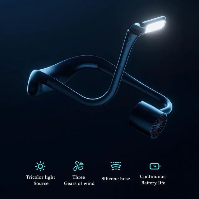 Lighting: Portable fan with the addition of portable lights. The light has three light colors that can be adjusted. The fan can be folded at will, and the light can be rotated, which is very convenient for storage.