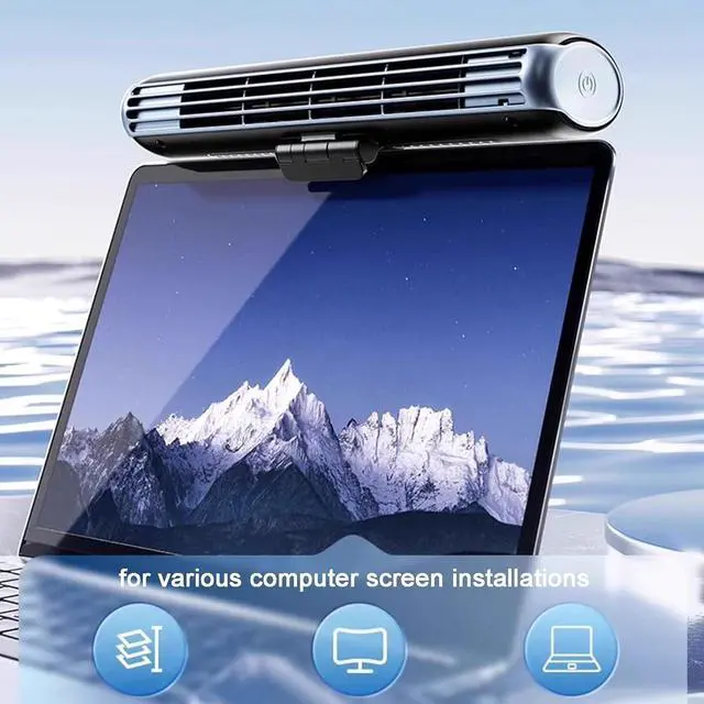 Clip-on Monitor FanSimply clip the USB monitor fan to the top of your PC/laptop screen and enjoy 360° cooling wind. The maximum clamping thickness is 20 mm, suitable for curved, flat monitors or laptops, without causing damage to the screen.