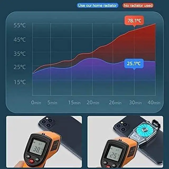 Mobile phone radiator can cool your devices instantaneously, keeping your mobile device at the optimal temperature without screen dims, freezes or automatic shutdown due to high temperatures,