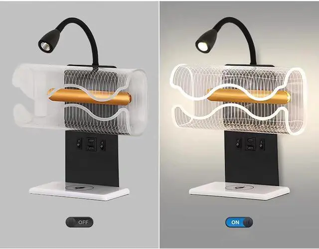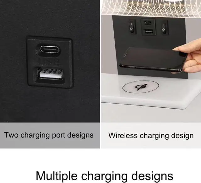 A variety of charging design, ligent wireless charging (you can charge without turning on the light) + USB charging, humanized design, no need to find the charger, with a variety of charging interfaces, wireless charging requires your mobile phone to rt wireless charging before charging, switch charging s at will.