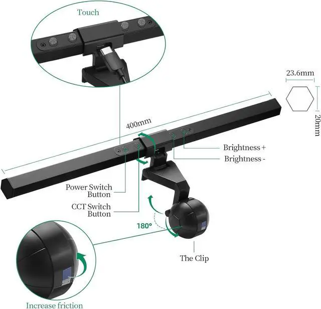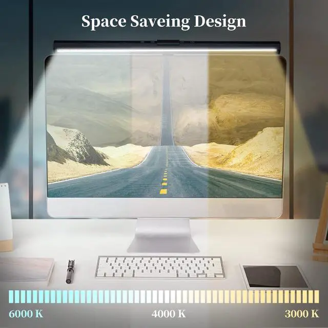 Space saving design:A space-saving design, clamp onto the top of the monitor compared with ordinary desk lamps, it saves 90% of desk space.