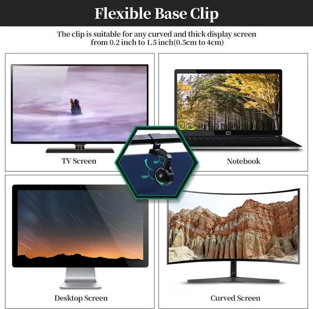 Flexible Base Clip: The clip is suitable for any curved and thick display screen from 0.2 inch to 1.5 inch(0.5cm to 4cm), Such TV Screen,Notebook,Desktop Screen,Curved Screen.