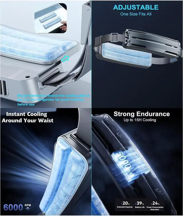 unparalleled cooling with our portable waist fan, featuring double cooling plates and a powerful 6000rpm motor that delivers strong airflows, ensuring you stay refreshingly cool even in the hottest conditions.