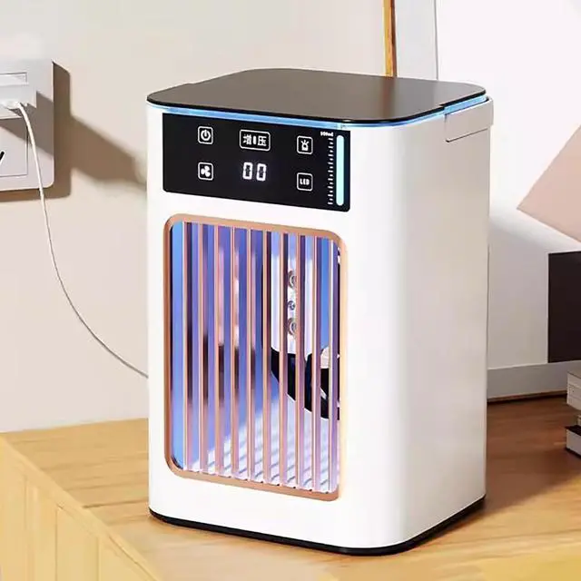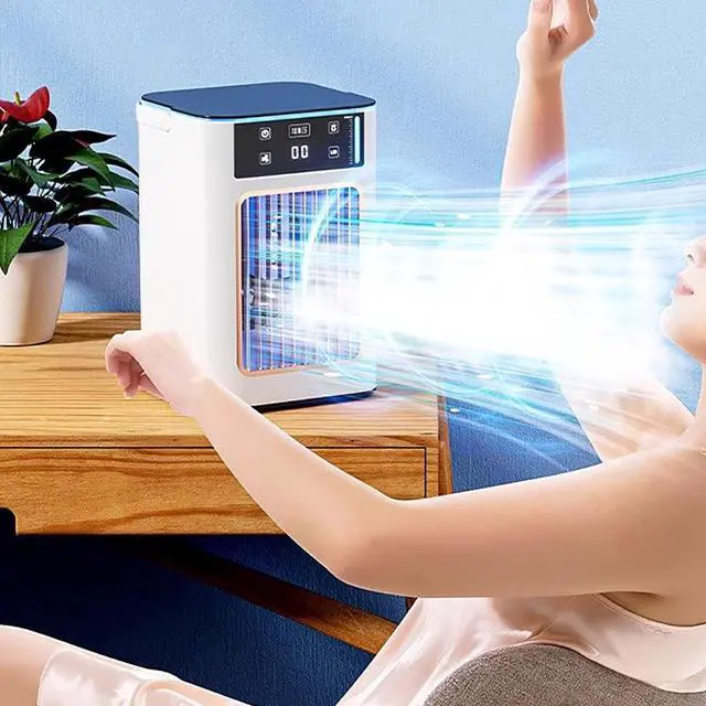 This small desktop cooling fan combines powerful airflow with intelligent dual-spray cooling to quickly dissipate the heat