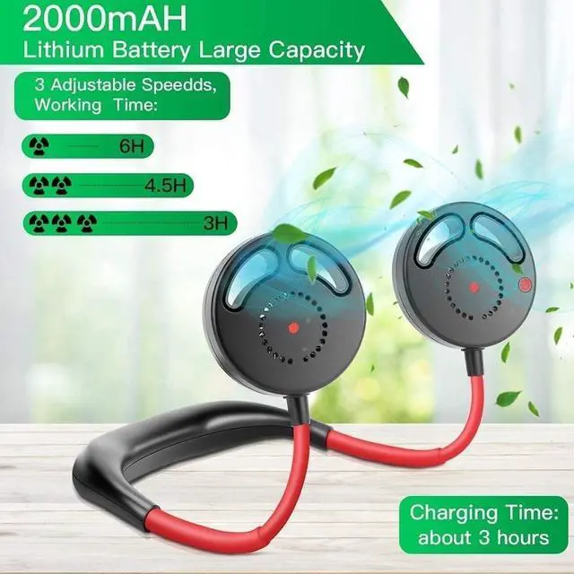 3-speed adjustable dual fans, portable fans have 2 mini fan heads, and are carefully crafted with brushless motors to make the bladeless neck fan durable and efficient. The conversion circuit can minimize the loss, thereby saving energy and protecting the environment.