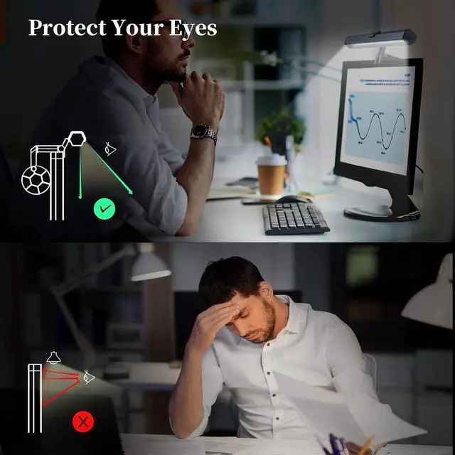 Protect Your Eyes: LEDs provide enough brightness while consuming 80% less energy. Laptop Screen Light Bar has an asymmetrical optical design that only illuminates the desk and ensures zero reflective glare off the screen.