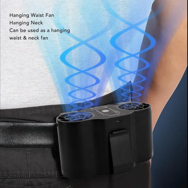 Spec: Item Type: Portable Waist Fan Material: ABS, Metal Battery Type: Lithium Battery (Built in Battery)