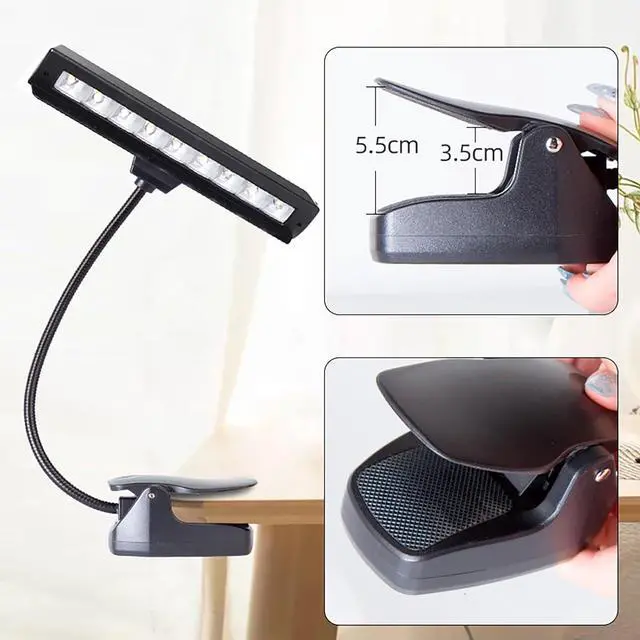 [360° Flexible Gooseneck]The reading lamp with silicone gooseneck clip, 360° bendable, allows you to place the light anywhere you want. Weighing only 200g, its small size and compact design make it easy to carry.This is a very handy little light, the clip works well, can be easily clipped on books, phones, tablets, kindles or music media etc