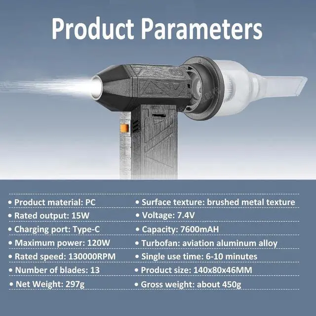 HIGH TEMPERATURE RESISTANT MATERIAL: Mini jet blower is made of high hardness and high temperature resistant aluminum alloy and electronic material, possess perfect texture, strong explosive power, low heat, more convenient to use.