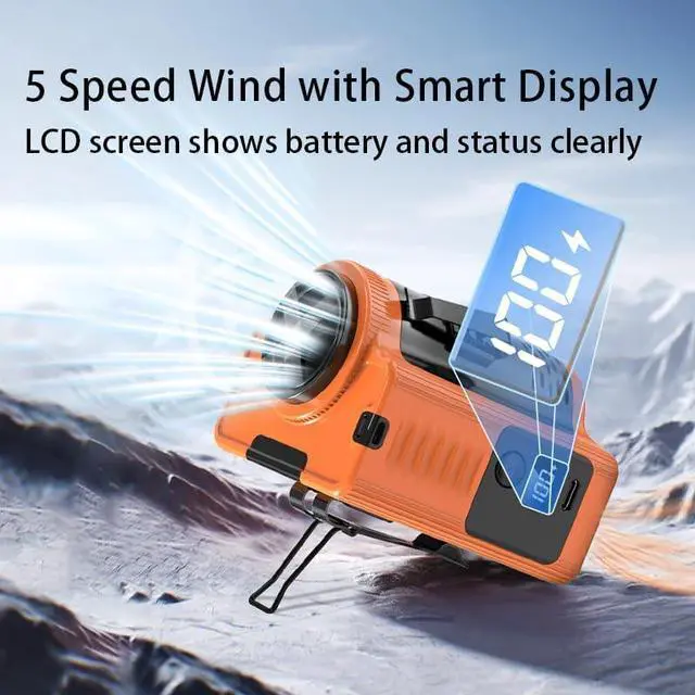 5 Adjustable Speed Levels with LCD Display Easily switch between wind modes; the digital screen clearly shows remaining battery and working status for user convenience.