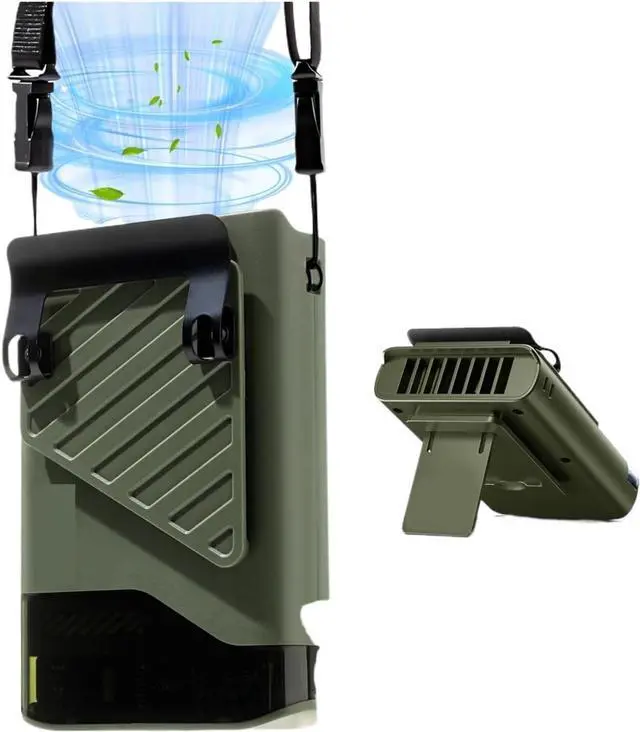 Portable Waist Fan With Belt Clip Light Mute Five Hole Neck Hanging Fan Suitable Outdoor Travel Of Office Desk(C-Green)