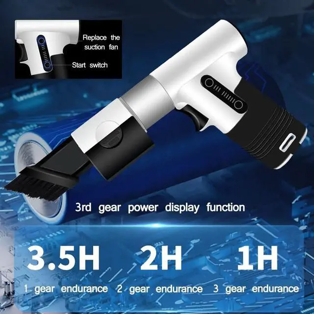 Efficient battery: The fan is equipped with a large capacity lithium battery, which can be used for up to 3.5 hours (1 speed), 2 hours (2 speeds), or 1 hour (3 speeds) after a single charge.