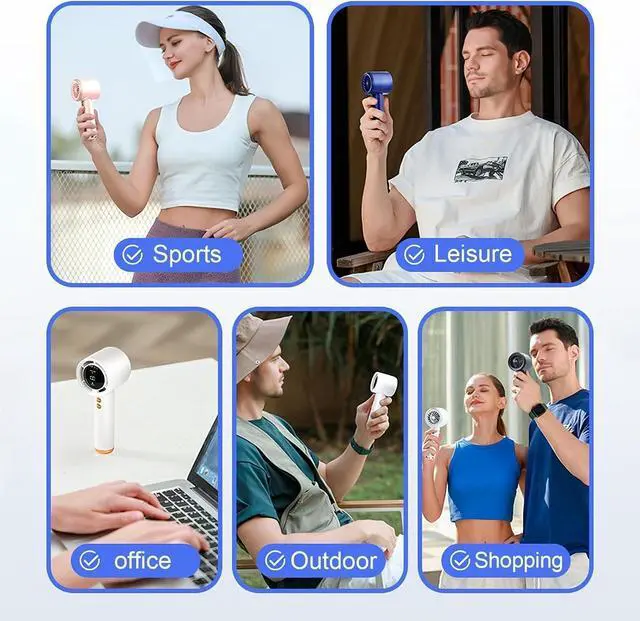 Brushless Motor - Super Power: The combination of a three-phase brushless motor and a 3000mAh battery significantly improves the wind speed, power, and endurance. The maximum wind speed can reach 9m/s. The highest rotation speed of the handheld fan is three times that of a regular personal fan, reaching up to 13000 RPM. It can cool for 3.5-15 hours on a single charge Scroll switch - customizable wind speed: The wind speed of this small fan is adjustable. Portable fans can be customized from 1 to 100 speeds to meet your various wind power generation needs in any scenario Technical Design - Cold Air Delivery: Personal fans utilize a turbine structure and powerful motors to quickly compress and cool the intrapped hot air, converting it into cold air blown out. On a hot day, this can quickly calm you down. The body of this turbofan is made of ABS material and uses precise plastic spraying technology. Its sleek cylindrical design provides an excellent tactile feel Digital Display - Power Reminder: This portable fan for travel is equipped with a high-definition digital display screen, which can show the current wind speed and remaining battery power, so you no longer need to worry about the remaining power of the fan. When the battery of this mini fan is low, you can arrange for charging in advance, ensuring a cool companion on every trip Small size-portable and anti-loss: The size of this portable mini fan is only 6.14*2.38*2.28 inches 0.47lb, you can put it in your pocket or bag, so no matter where you go, this handheld fan can keep you cool, it is a cool companion for your travel and outdoor sports, and it is also a thoughtful gift for women/men Multiple Charging Ways - More Convenience: This USB rechargeable fan can be fully charged in just 2-3 h