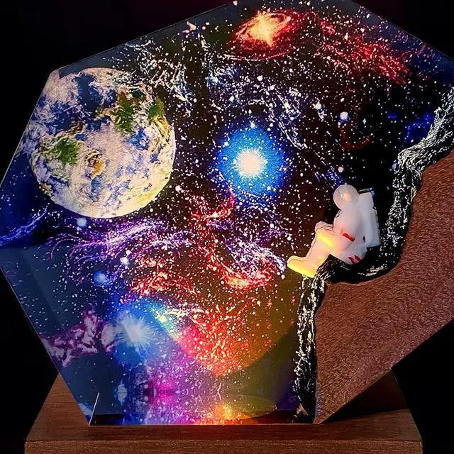 Each Muliti FL lamp is a hand-poured epoxy resin masterpiece, embedding dynamic ocean-space&galaxy dioramas within optical-grade transparency. Sustainably harvested walnut bases cradle these frozen moments of liquid artistry, transforming desks and shelves into gallery vignettes.