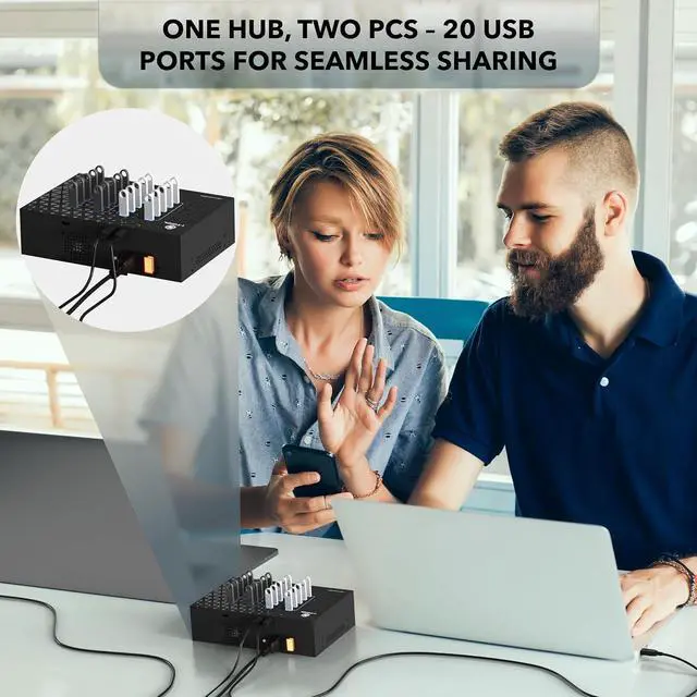 SYNC & CHARGING the Powered USB Hub is Charger and Speed Data Transfer. The Splitter comes with 2 USB 3.0 Cables, allowing you to connect 2 Laptops or Computers at the same Time to the USB Hub. No need to worry about your Computer Accessories, as it has strong built-in multi-level Protections: Over-Voltage, Over-Current, Short Circuit, Over-Temperature, and the Power Adapter has an Under Voltage Lock-Out Function.