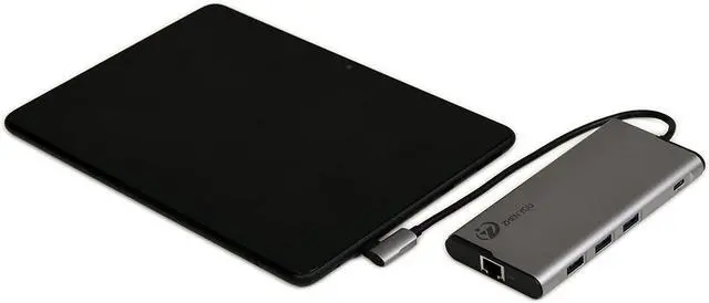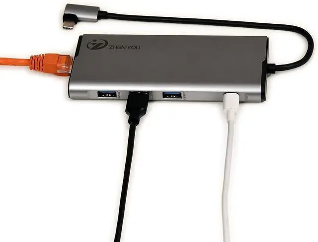 1. USB_C docking station adapter applies to computer, tablet and cell phone with operation system of iOS, Android, Windows, Harmony OS, etc. 5 ports are converted through USB_C docking station, 3*USB 3.0, 1*100W PD, 1*10M/100M/1000M Ethernet port