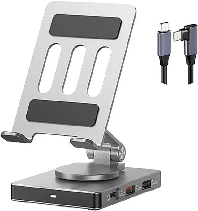 The rotating mechanism securely holds devices up to 10.5" while maintaining full access to all ports, making it a essential USB C docking station.