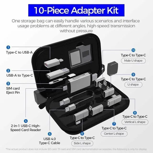 Data Transfer: The digital gadget has 7 different adapters for conversion, charging, transmission, and more. Contains a Type-C cable, meets all you need to charge and transfer.