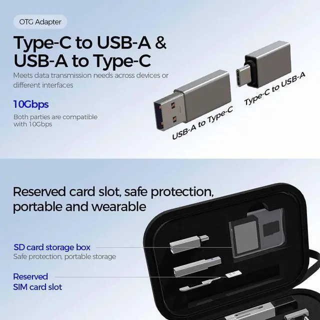 Compact and Portable: This USB adapter kit is 13*9*4cm, it is easy to take in pockets, wallets, and handbags. Includes a card pin, which helps you swap and store your cards easily.