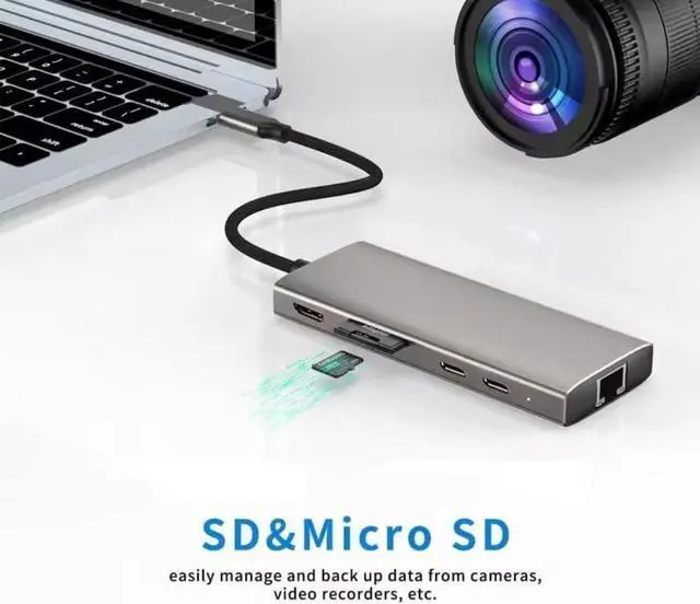 VERSATILE CONNECTIVITY: 10-in-1 USB-C hub featuring 4K HDMI output, 4 USB 3.0 ports, SD/Micro SD card slots, Ethernet port, and USB-C data transfer