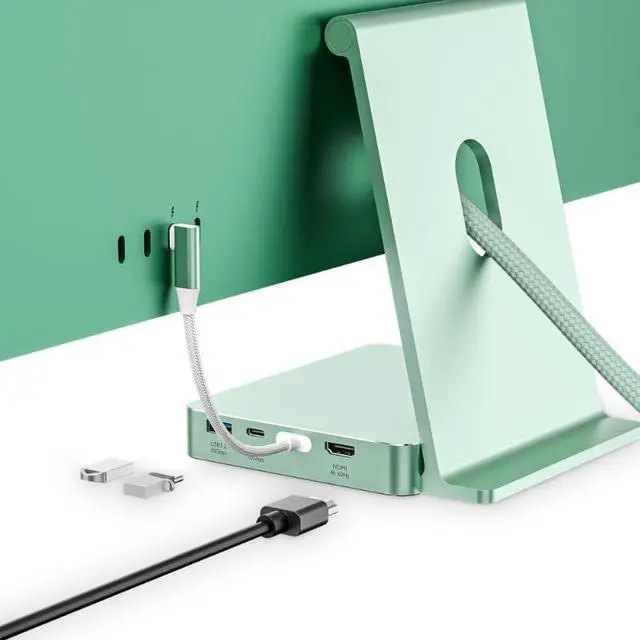 Plug and PlayMade of aluminium alloy with excellent heat dissipation performance, this lightweight and compact device features an integrated embedded design that perfectly fits the 2021/2023/2024 24-inch iMac, making the USB-C docking station and desktop stand seem like a natural extension of the iMac. It is easy to use, requiring no software installation, drivers, or complex operationssimply plug and play. Note: This docking station is not compatible with the 2020 iMac or earlier models in terms of appearance, but it is functionally compatible with all devices featuring a full-function C-port.
