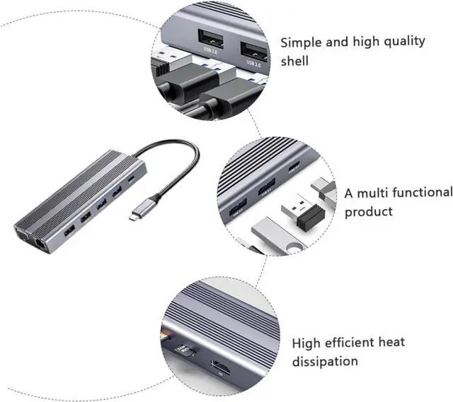 12-in-1 hub adapter--the item is made of plastic material, which is safe and reliable and can be used for a long time,USB 3.0 Hub