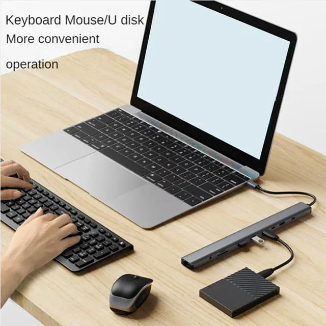 10-in-1 USB-C Hub instantly adds 1x 3.5mm Audio Jack 1x Gigabit Ethernet port 3x USB 3.0 1x TF Card slot 1x SD Card slot 1x -Compatible port 1x USB-C port and 1 USB Type-C interface to your laptop with its convenient Plug-and-Play technology requiring no driver or software installations to work. (the connecting cable is 166mm. If the connecting cable is not long enough please buy a type-C extension cable).