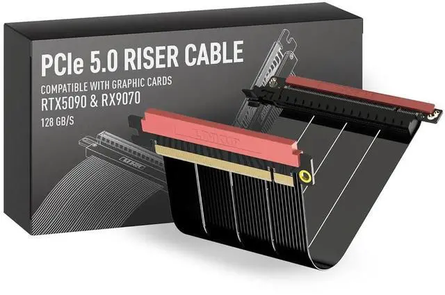 Verified Compatibility Built for vertical GPU mount and standard layouts across towers, SFF/ITX sandwich cases, open benches, and water-cooled rigs. Fully backward-compatible with PCIe 4.0 and validated on ASUS WS WRX80SE WiFi II and WRX90E Gen5 boards. Ready for next-gen cards like RTX 5090 and RX 9070. Use this PCIe 5.0 riser cable to place the GPU exactly where airflow and aesthetics demandwithout giving up stability.