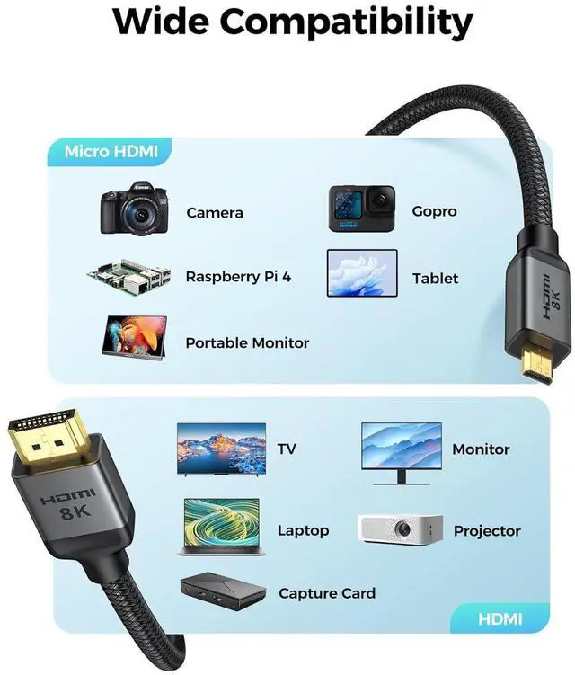 Important NoteThis cable is designed for Bi-Directional Micro HDMI to standard HDMI, not Micro USB/Mini HDMI to HDMI. It is not compatible with Samsung devices featuring Micro USB ports. Please ensure your dev