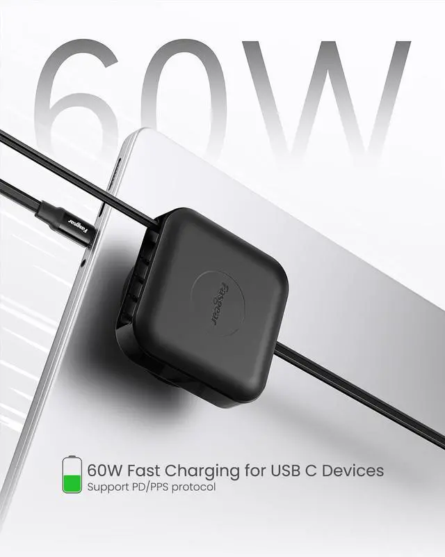 1Used at Office Desk2Suitable for Car Charging3Match with Nightstand4Perfect for TravelThe video showcases the product in use. The video guides you through product setup. The video compares multiple products. The video shows the product being unpacked. Merchant Video desk mount retractable usb c cable one side pull