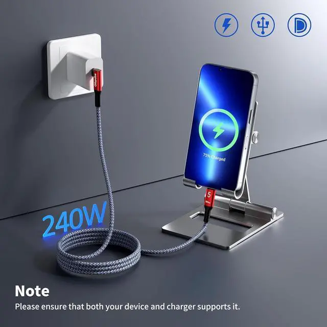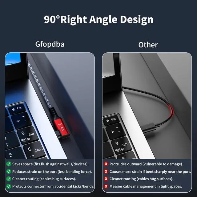 90-Degree Design: 240W USB4 cable for Thunderbolt 5 cable right angle design saves space and improves cable routing in tight spaces, protect the plug and your devices.It is ideal for tight spaces like car charging and corner outlets. Easy to manage, keeping your desktop organized