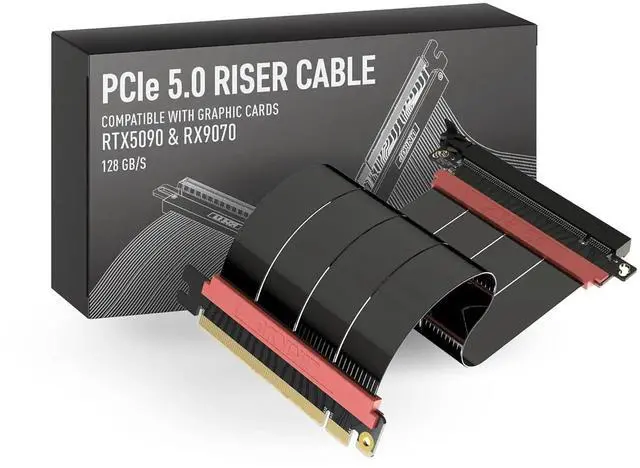 Verified Compatibility Built for vertical GPU mount and standard layouts across towers, SFF/ITX sandwich cases, open benches, and water-cooled rigs. Fully backward-compatible with PCIe 4.0 and validated on ASUS WS WRX80SE WiFi II and WRX90E Gen5 boards. Ready for next-gen cards like RTX 5090 and RX 9070. Use this PCIe 5.0 riser cable to place the GPU exactly where airflow and aesthetics demandwithout giving up stability.