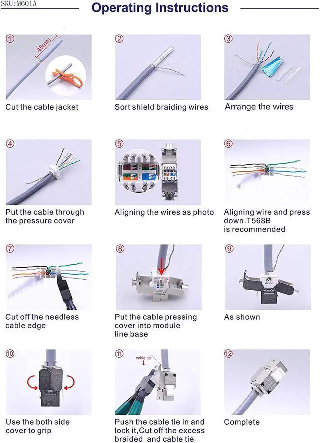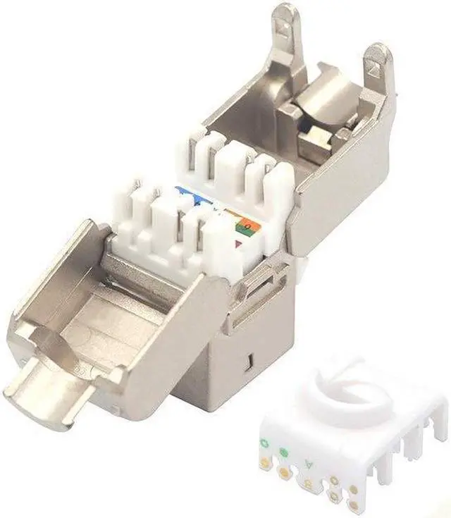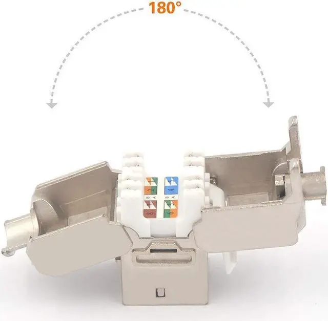 Full Metal Jacket RJ45 Shielded Keystone jacks fit a standard wall plate or patch panel with a keystone blank outlet outdoor or indoor, supports 23 to 26 AWG solid or stranded wire, compatible with cat6a/cat6 ethernet sftp/ftp/utp cables.