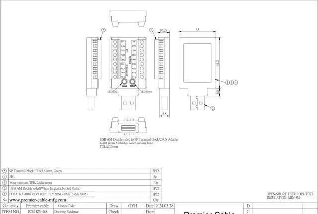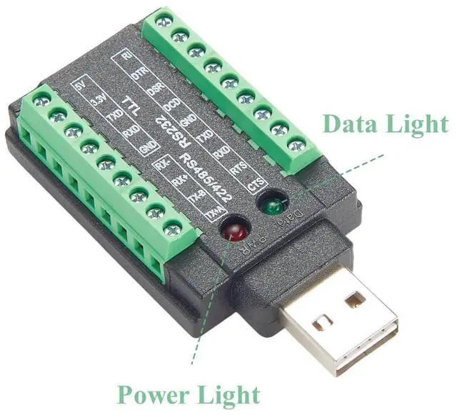 Industrial Terminal Block With LEDFTDI USB Serial Adapter With 2 Row 9Pin Screw Terminal Block(PH: 3.81mm).With power and data indicator lights, for real-time monitoring and easy troubleshooting.for lab environments, field testing, and control cabinets.