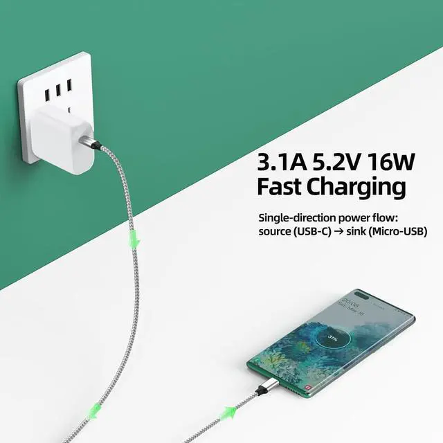 Sturdiness & DurabilityApplying aluminum alloy case and braided thread jacket, our type c to micro usb cable has anti-scratch performance and minimize wear and prevent breakage. All of these designed for longlasting using.